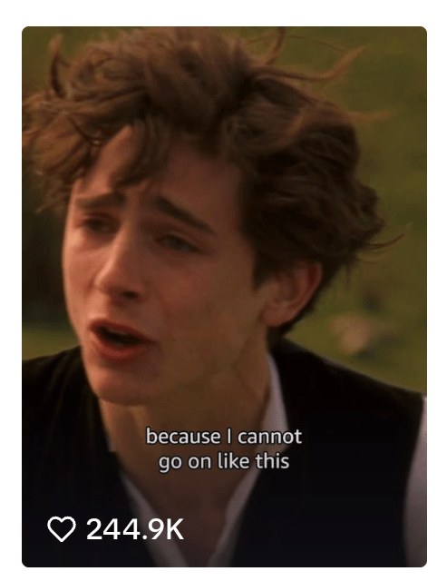 It’s like the Wattpad, AO3, and Tumblr of this decade, rolled into one — except, instead of long-form fanfic, we get 12-second edits of eye contact, hand flexes, and almost-kisses, all set to Ethel Cain, Hozier, or Lana Del Rey.